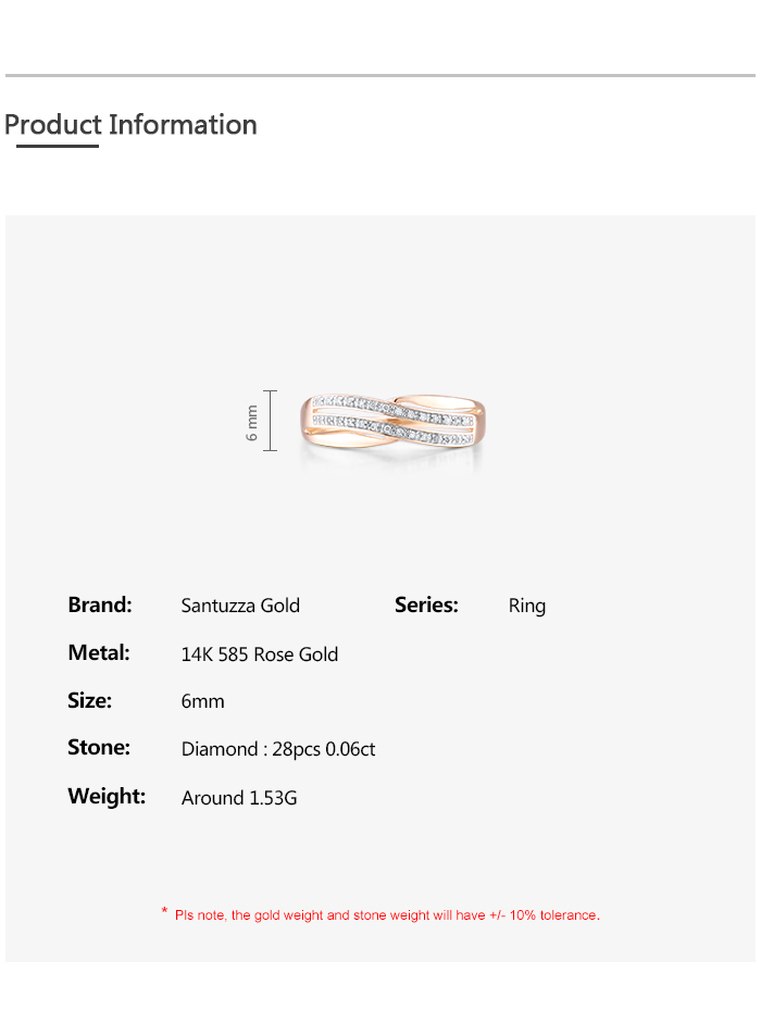 SANTUZZA 14K 585 Rose Gold Rings Sparkling Diamonds Fine Jewelry