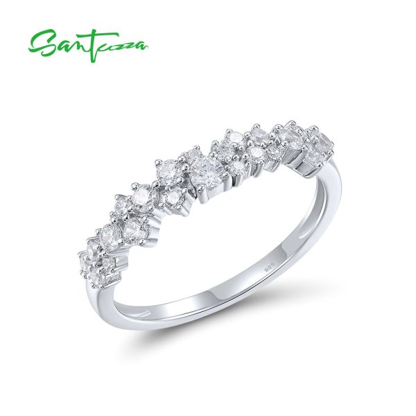 SANTUZZA 925 Sterling Silver Rings White Cubic Zirconia Linear Jewelry
