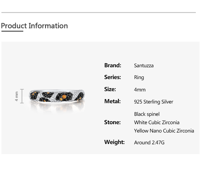 SANTUZZA Silver Rings For Women Pure 925 Sterling Silver Black Spinel Yellow White Cubic Zirconia Glamorous Trendy Fine Jewelry