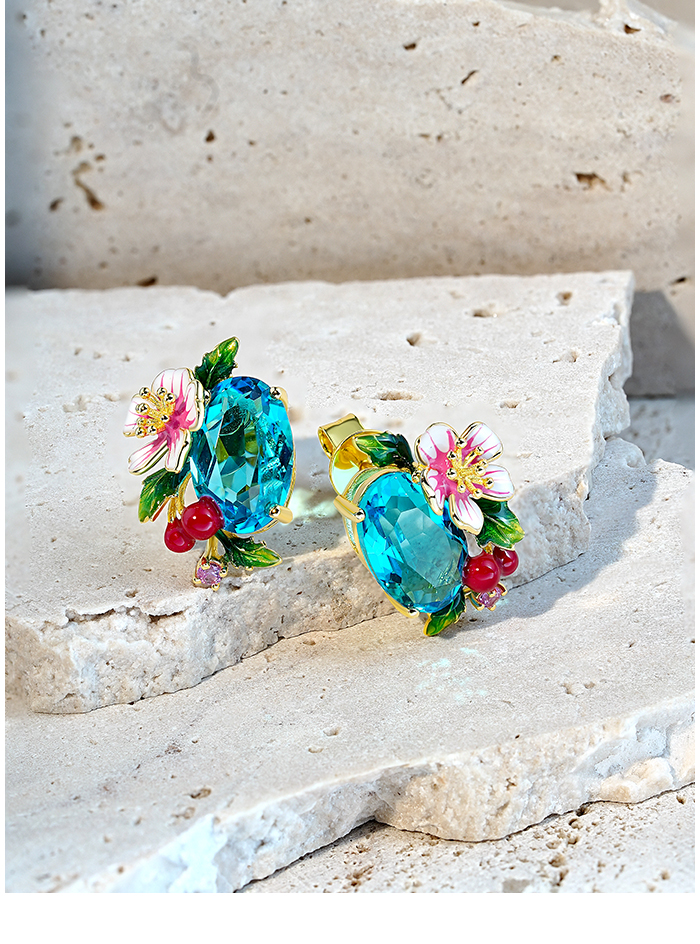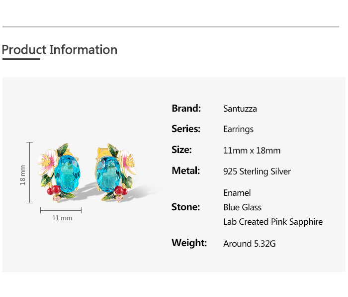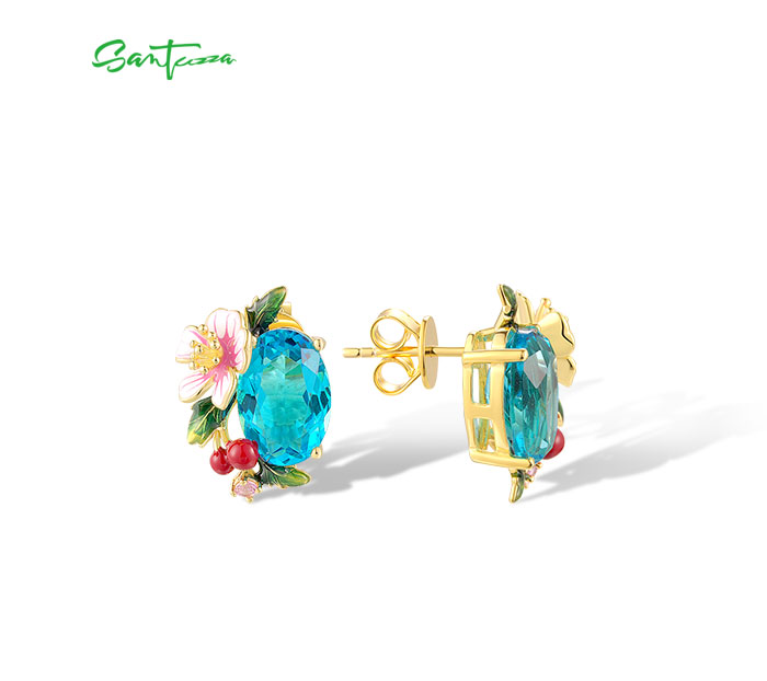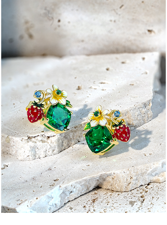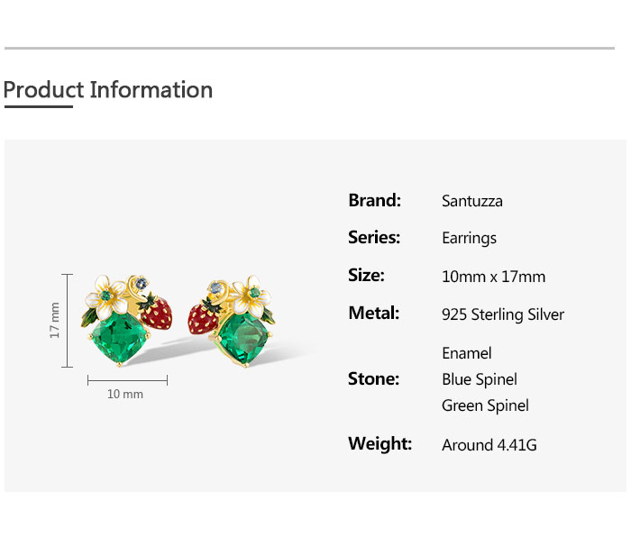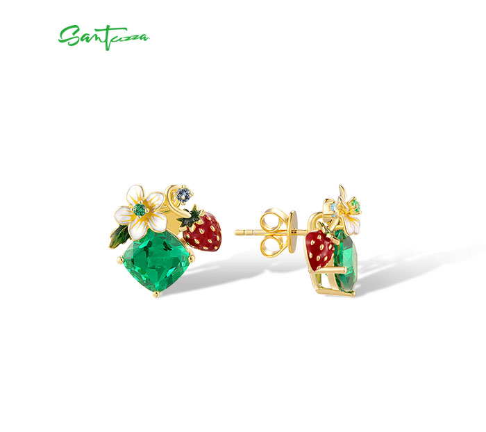 SANTUZZA 925 Sterling Silver Earrings Sparkling Colored Gems Sweet Style Strawberry Flower Enamel Jewelry
