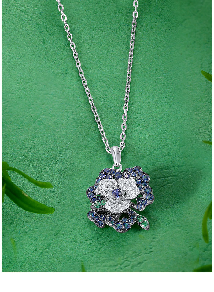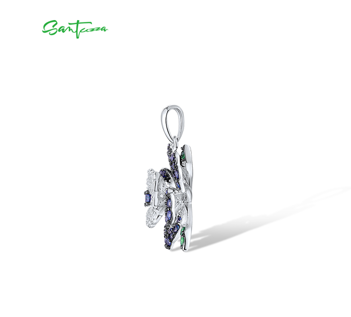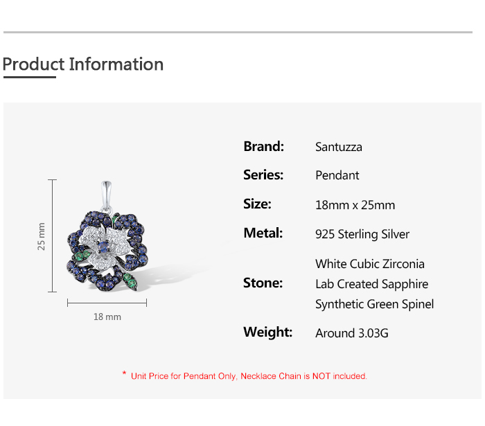 SANTUZZA 925 Sterling Silver Pendant Blue Spinel Enamel Flower Trendy Gifts Fine Jewelry