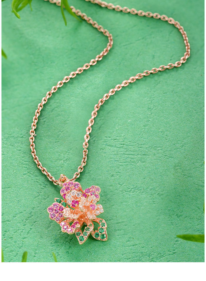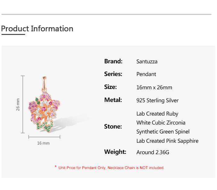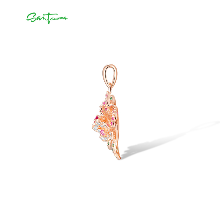 SANTUZZA 925 Sterling Silver Pendant Shiny Pink & Blue Gems Glamorous Flower Jewelry