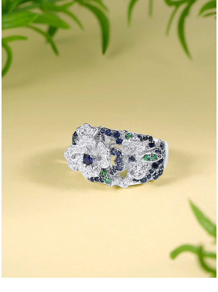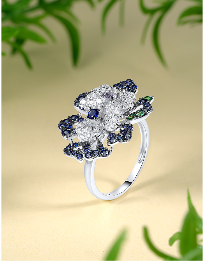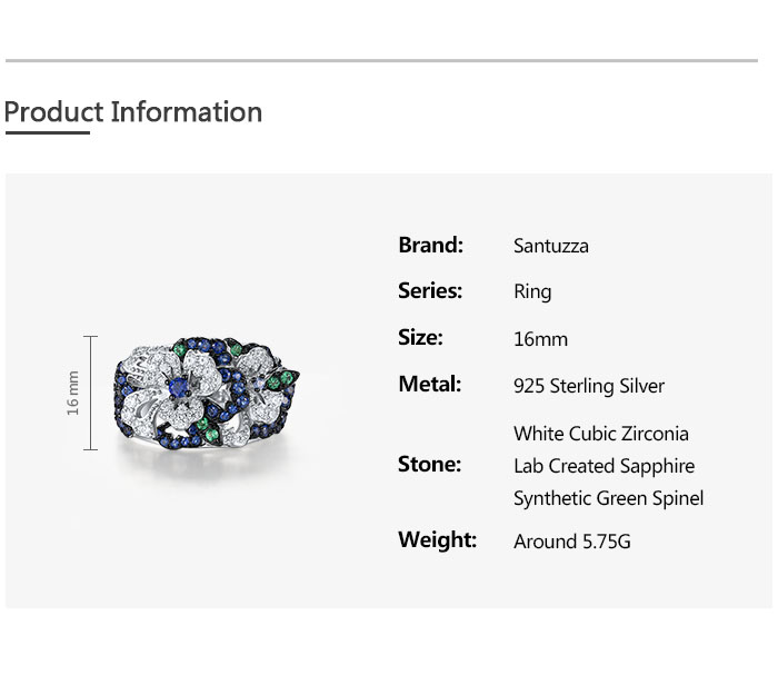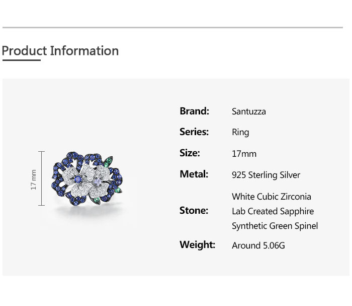 SANTUZZA 925 Sterling Silver Ring Blue Spinel Enamel Flower Chic Wedding Gifts Fine Jewelry