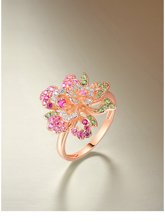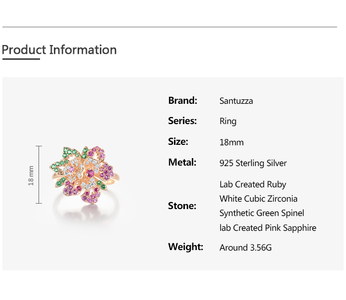 SANTUZZA 925 Sterling Silver Ring Multi-Color Gems Floral Anniversary Wedding Fine Jewelry Set