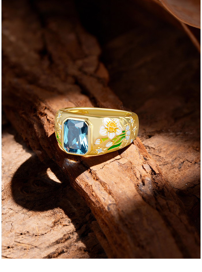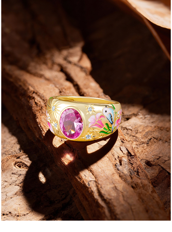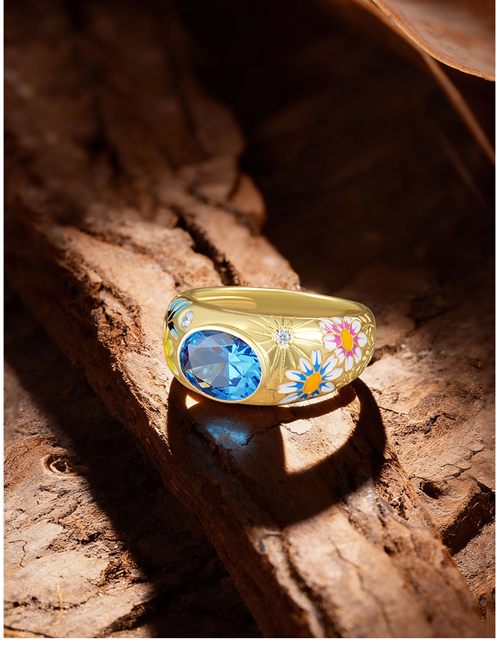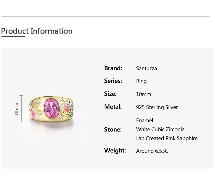 SANTUZZA 925 Sterling Silver Ring Sparkling Vintage Flower Enamel Colorful Gems Romantic Gifts Jewelry